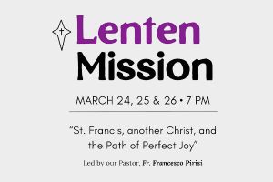 Stella Maris Parish is hosting a Lenten Mission titled: "St. Francis, another Christ, and the Path of Perfect Joy". Led by their pastor, Fr. Francesco Pirisi the mission will be on March 24 to 26 at St. Michael’s Church, 14 St. Michael’s Ave., Halifax. Each evening starts at 7:00pm and include a 45 minute presentation by Fr. Francesco. The final night will end with Adoration.