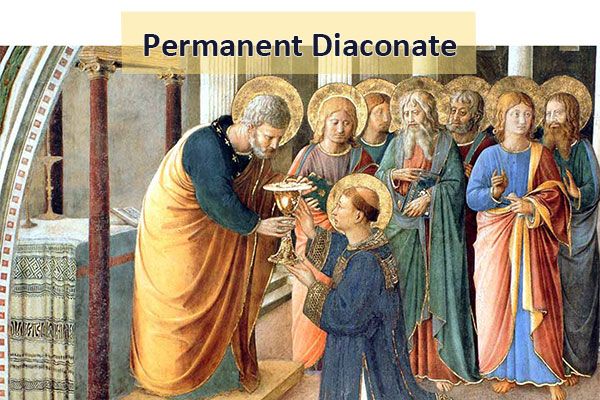 The Diaconate is as old as the Church and was instituted by the Apostles. The terms" Deacon" and "Diaconate" derive from the Greekword diaconia, which means service or ministry. Men who answered the call to serve the church as deacons assisted priests in a variety of ways but did not necessarily continue on to become priests. There were numerous deacons in the early Church, however, over the centuries, the permanent Diaconate disappeared and the Diaconate became only a transitional state into which a man was ordained prior to being ordained to the Priesthood.