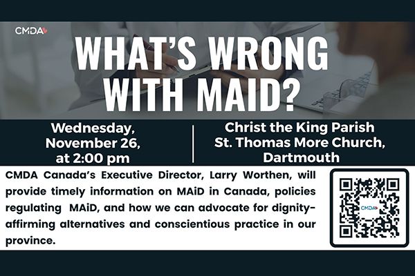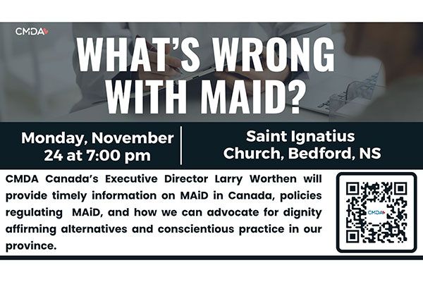 The Christian Medical and Dental Association of Canada will host a series of public talks exploring Medical Assistance in Dying (MAiD) and its impact on people of Nova Scotia, their faith, and healthcare in Canada. The sessions will be led by Deacon Larry Worthen, Executive Director of the Christian Medical and Dental Association of Canada.