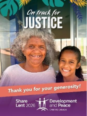 Development and Peace — Caritas Canada thanks you for supporting the On Track for Justice campaign with your Share Lent donation. Your donation will help support our sisters and brothers in Africa, Asia, Eastern Europe, Latin America and the Middle East.